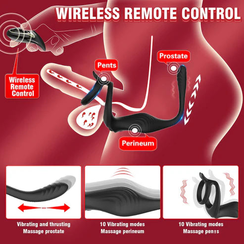 3 IN 1 Prostate Massager Anal Vibrator Butt Plug Stimulator with 10 Thrusting Modes