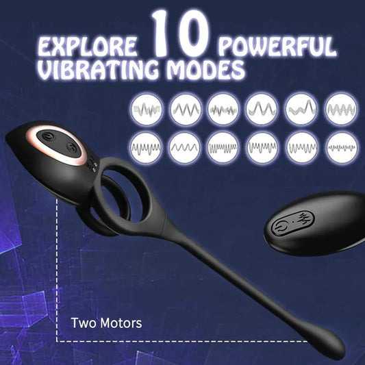 3 IN 1 Prostate Massager Cock Ring Penis Vibrator with 10 Vibrating Modes