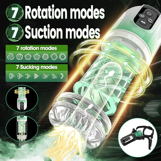 2 IN 1 Automatic Male Masturbator Penis Pump with 7 Rotating & 7 Sucking & Licking Modes