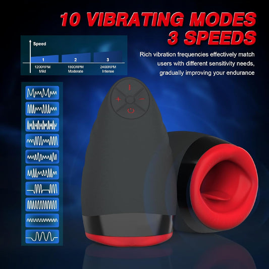 Automatic Masturbator Penis Trainer Vibrator with 10 Tongue-Licking Tapping Vibrating Modes