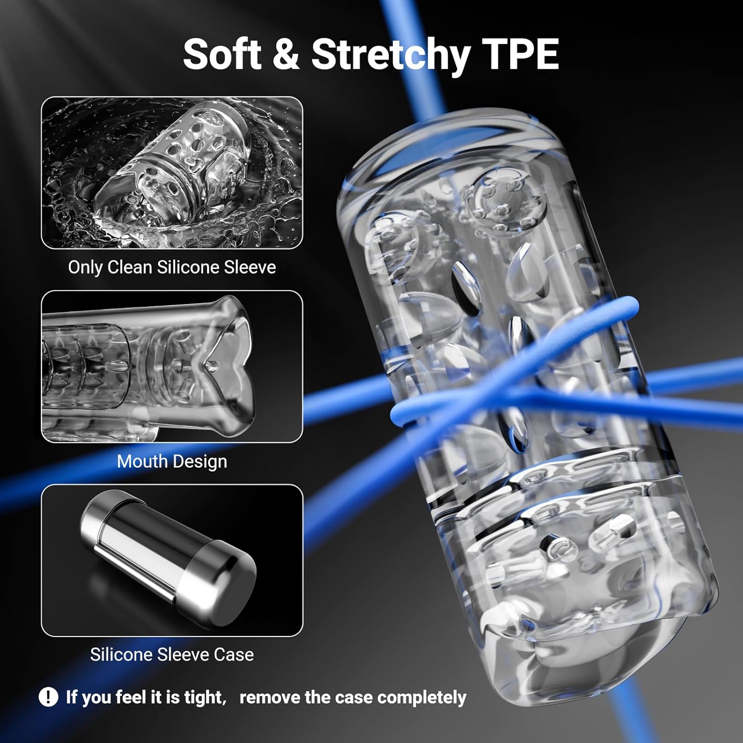 - Transparent Soft Skin-friendly Silicone: The mens sex toys grafted from safe, skin-friendly silicone, the pocket pussy features a 3D textured interior and mouth design. The removable silicone sleeve makes cleaning easy, while the protective shell ensures durability(Please remove all shells when in use). Its transparent silicone adds a visually stimulating experience during use