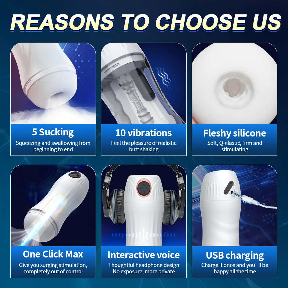 Automatic Masturbator Oral Stroker Blowjob with 5 Sucking & 10 Vibrating Modes