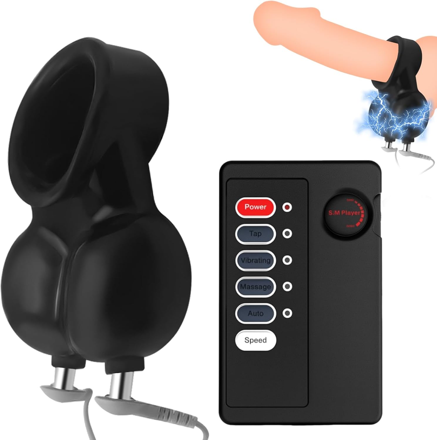 BDSM Testicle Wearable Cage Penis Trainer Sleeve with 9 Intensity Levels & 4 Modes