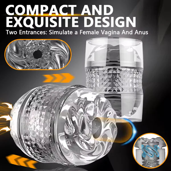 - 【Pioneering Crystal Spiral Textured Tunnel & Ideal Paired Open-ended Design For New Realms Of Pleasure】-Made of TPE material, the stroker’s inner sleeve is comfortably snug and can offer dual stimulation with its spiral ribbed texture for a marvelous feeling. The open-ended design allows this feeling to shuttle along with your little guy. You can easily spiral along and against the texture and the climax-inducing dual crystal, spiral bumps line the chamber to drive the wild with each stroke.