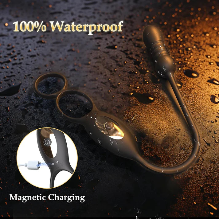 Dual motors for synchronized internal and external stimulation – The vibrating anal plug features a dual-motor design with nine thrusting and vibration modes. The first motor targets the anus, while the second motor is positioned at the perineum and transmits powerful vibrations to the cock ring. Together, the synchronized motors create a truly multi-dimensional climax through combined internal and external stimulation.